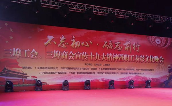 为宣传贯彻十九大精神,加强企业之间交流,1月19日晚上,三埠工会、三埠商会在三埠文化公园举办宣传十九大精神暨职工表彰文化晚会,并表彰一批优秀员工和突出贡献企业。开平市领导梁民跃、冯健楚出席了活动。