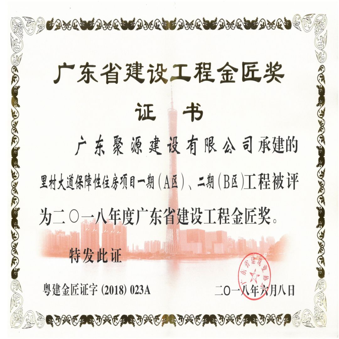 近日,由江门市政府投资、我司(广东聚源建设有限公司)承建的公共租赁住房项目里村大道保障性住房(润泽园)项目喜获“广东省建设工程优质奖”及“广东省建设工程金匠奖”,标志着项目建设以来要求创建省优质工程的目标顺利完成。