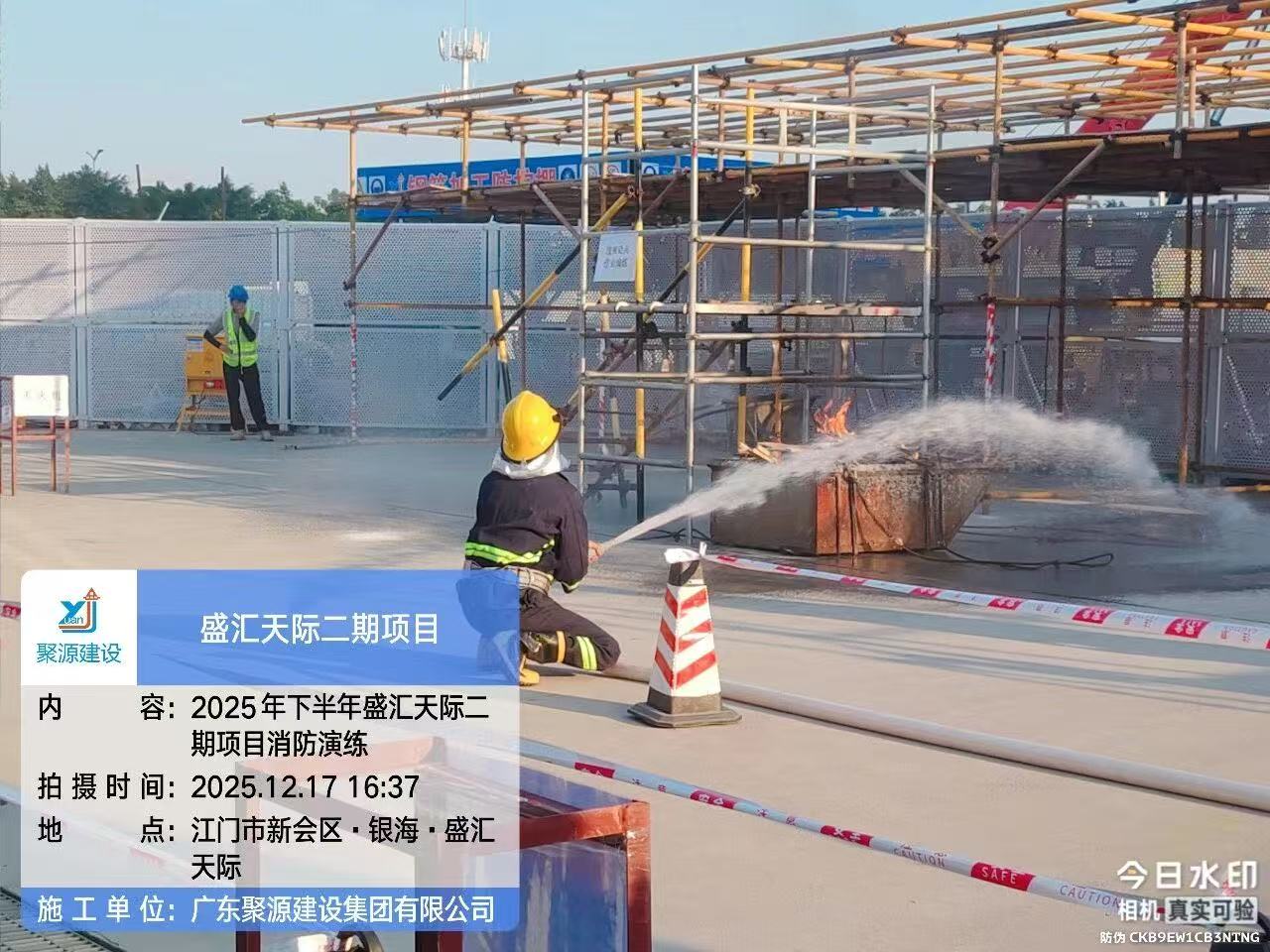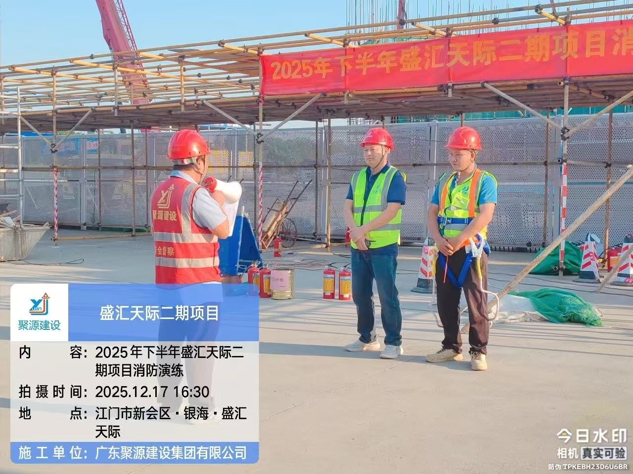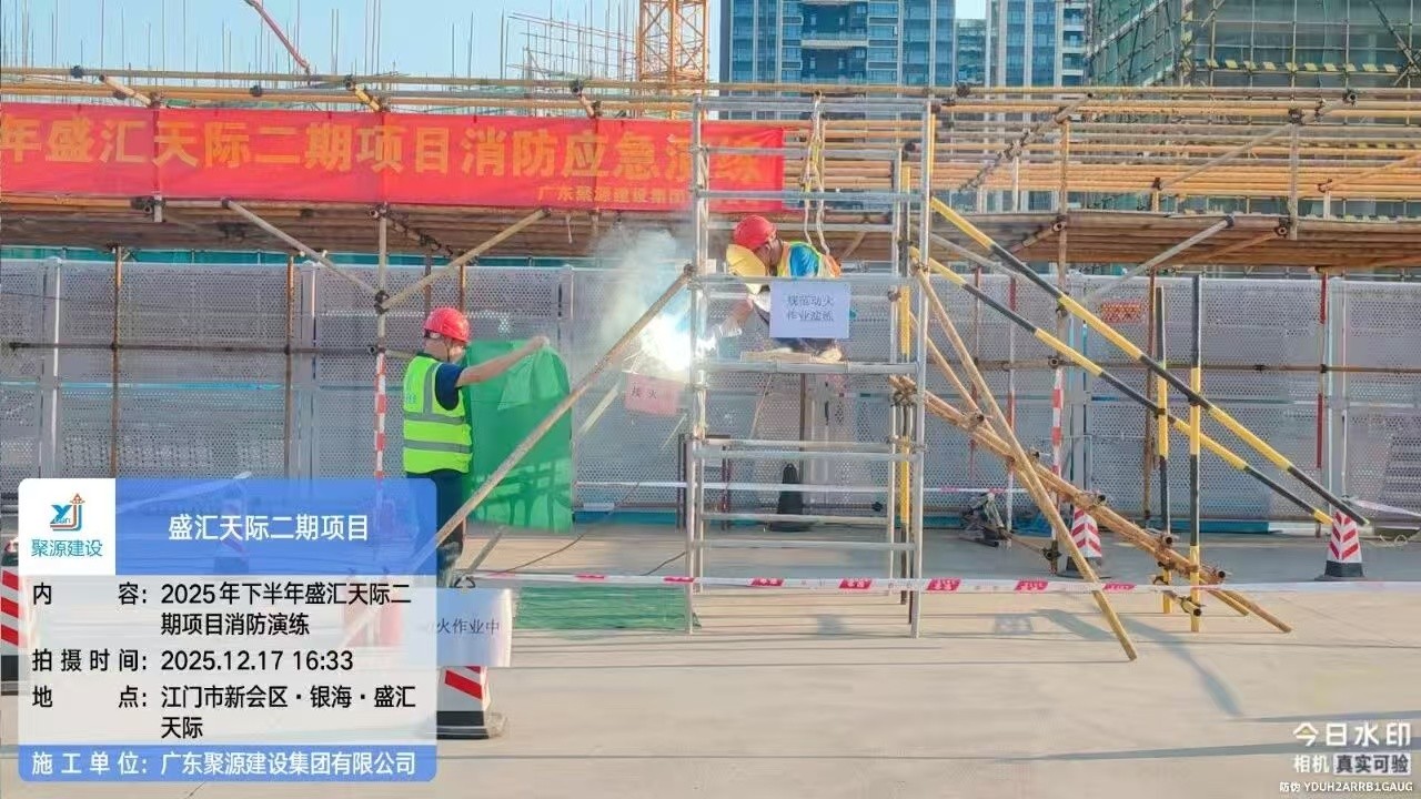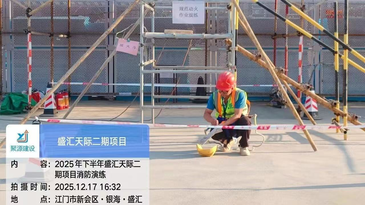 为筑牢建筑工地消防安全防线,切实落实 “预防为主、生命至上” 的安全理念,12月17日,广东聚源建设集团有限公司在其承建的银海·盛汇天际二期项目现场,举办了一场消防应急演练。从火情预警到初期灭火,从人员救援到有序疏散,全体参练人员以实战状态检验应急处置能力,用责任担当诠释聚源建设集团对安全生产的极致追求。聚源建设集团各项目主要负责人及安全员参加活动。